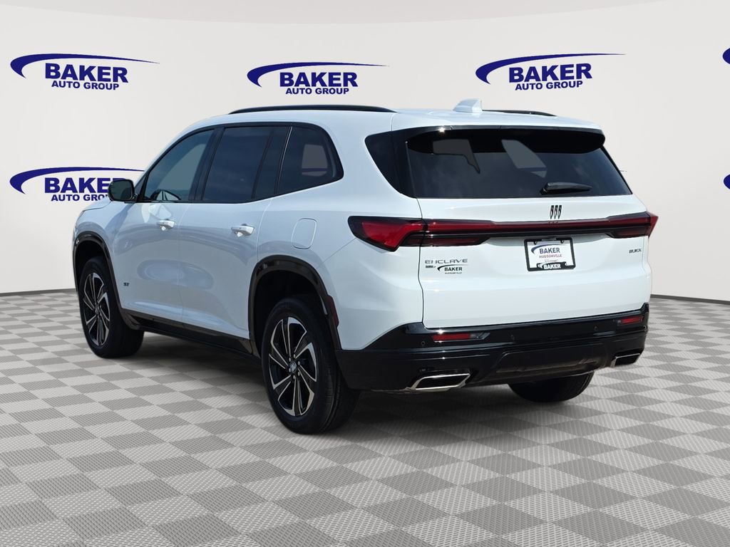 summit white 2026 Buick Enclave Sport Touring AWD 8-Speed Automatic 2.5L DOHC AWD, 110-Volt Power Outlet, 1st and 2nd Row All-Weather Floor Liners, 2nd Row 1-Touch Flat Folding Seat, 3rd Row 60/40 Power Split-Folding Bench Seat, 3rd Row All-Weather Floor Liner, Apple CarPlay/Android Auto, Auto High-beam Headlights, Bose Premium 12-Speaker Audio System with Subwoofer, Driver 4-Way Power Lumbar Seat Adjuster, Driver 8-Way Power Seat Adjuster, Emergency communication system: OnStar and Buick connected services capable, Floor Liner Package, Head-Up Display, Heated Driver and Front Passenger Seats, Heated steering wheel, Heated Wiper Park, Inside Rearview Auo-Dimming Rear Camera Mirror, Integrated Cargo Liner, Memory Settings, Perforated Leatherette Seat Trim, Power Liftgate, Power Package, Preferred Equipment Group 1SM, Premium audio system: Buick Infotainment System, SiriusXM with 360L Trial Subscription, Universal Home Remote, Wheels: 20 Alloy with High Gloss Black and Machine Finish.