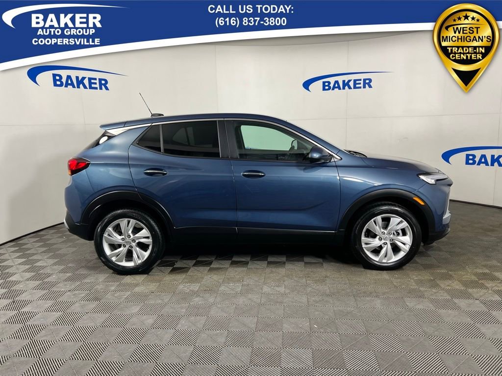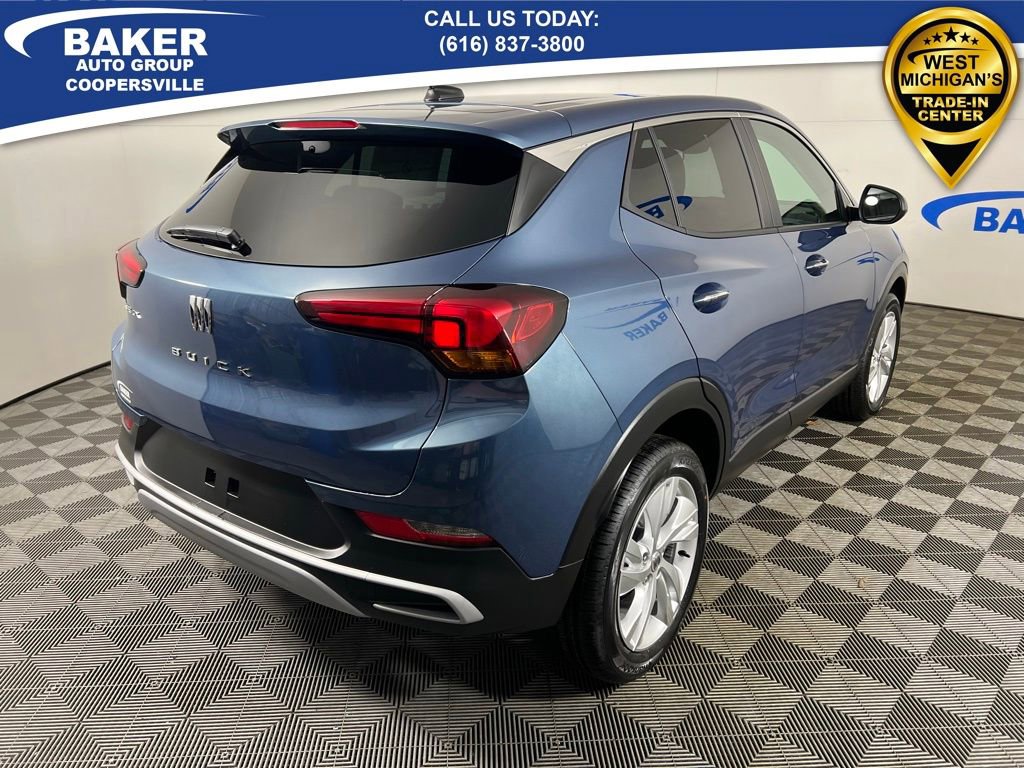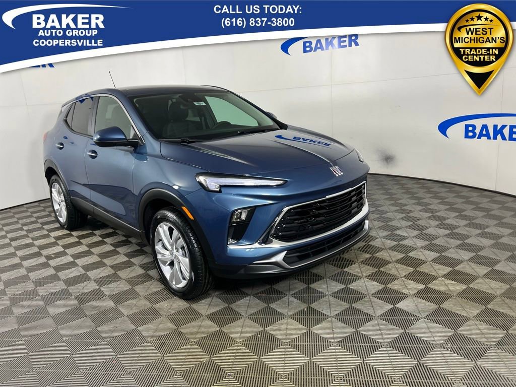 Ocean Blue Metallic 2026 Buick Encore GX Preferred FWD CVT ECOTEC 1.3L Turbo 2-Way Power Driver Lumbar Control, 4-Way Manual Passenger Seat Adjuster, 4-Wheel Disc Brakes, 6 Speakers, 6-Way Manual Driver Seat Adjuster, 8-Way Power Driver Seat Adjuster, ABS brakes, Air Conditioning, All-Weather Floor Liners, Alloy wheels, AM/FM radio: SiriusXM, Auto High-beam Headlights, Automatic temperature control, Brake assist, Bumpers: body-color, Cloth with Leatherette Seat Trim, Comfort Package, Compass, Delay-off headlights, Driver door bin, Driver vanity mirror, Dual front impact airbags, Dual front side impact airbags, Electric Auxiliary Heating/Defroster, Electronic Stability Control, Emergency communication system: OnStar and Buick connected services capable, Enhanced Performance 6-Speaker System, Flat-Folding Front Passenger Seatback, Front anti-roll bar, Front Bucket Seats, Front Center Armrest, Front reading lights, Front wheel independent suspension, Fully automatic headlights, Heated door mirrors, Heated Driver and Front Passenger Seats, Heated Steering Wheel, Illuminated entry, Knee airbag, Low tire pressure warning, Occupant sensing airbag, Outside temperature display, Overhead airbag, Overhead console, Panic alarm, Passenger door bin, Passenger vanity mirror, Power door mirrors, Power steering, Power windows, Preferred Equipment Group 1SB, Radio data system, Radio: AM/FM Audio System, Rear Center Armrest, Rear reading lights, Rear side impact airbag, Rear window defroster, Rear window wiper, Remote keyless entry, Ride and Handling Suspension, Security system, SiriusXM Trial Subscription, Speed control, Speed-sensing steering, Split folding rear seat, Steering wheel mounted audio controls, Tachometer, Telescoping steering wheel, Tilt steering wheel, Traction control, Trip computer, Variably intermittent wipers, Wheels: 18 Bright Silver Painted Aluminum, Wireless Apple CarPlay/Wireless Android Auto.