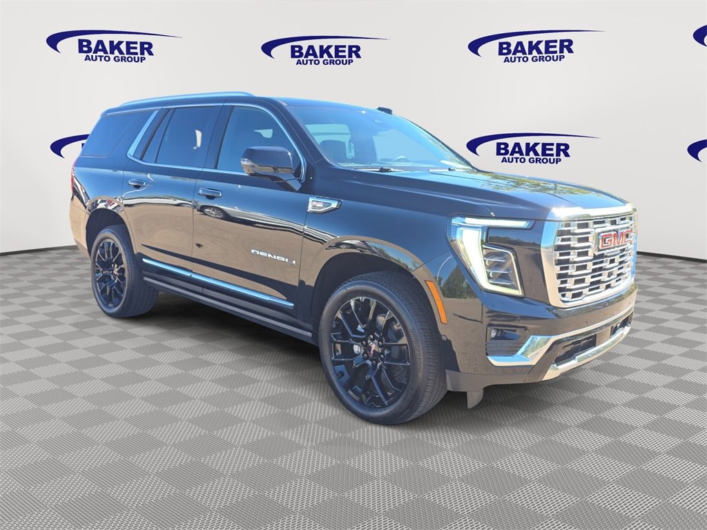 Onyx Black 2025 GMC Yukon Denali 4WD 10-Speed Automatic with Overdrive EcoTec3 6.2L V8 Yukon Denali, 4D Sport Utility, EcoTec3 6.2L V8, 10-Speed Automatic with Overdrive, 4WD, Onyx Black, Black Leather.