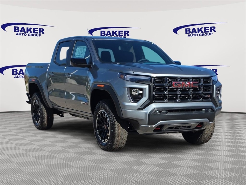 Sterling Metallic 2026 GMC Canyon AT4 4WD 8-Speed Automatic 2.7L I4 Turbocharged DOHC 16V LEV3-SULEV30 310hp Canyon AT4, 4D Crew Cab, 2.7L I4 Turbocharged DOHC 16V LEV3-SULEV30 310hp, 8-Speed Automatic, 4WD, Sterling Metallic, Jet Black/Timber Leather, 120-Volt Bed Mounted Power Outlet, 2 Rear USB Ports in Center Console (Charge-Only), 6-Way Power Passenger Seat Adjuster, 8-Way Power Driver Seat Adjuster, AT4 Premium Package, Automatic Emergency Braking, Blind Zone Steering Assist w/Trailering, Canyon Pro Safety, Canyon Safety Plus Package, Driver & Front Passenger Illuminated Visors, Driver & Front Passenger Ventilated Seats, Driver Memory, Driver Seatback Map Pocket, Dual-Zone Auto Climate Control Air Conditioning, EZ-Lift & Lower Tailgate, Following Distance Indicator, Forward Collision Alert, Front LED Fog Lamps, Front Pedestrian & Bicyclist Braking, Heated Driver & Front Passenger Seats, Heated Steering Wheel, Inside Rear-View Auto-Dimming Mirror, IntelliBeam Automatic High Beam On/Off, Interior Overhead Courtesy Light w/Dual Reading Lamp, Lane Keep Assist w/Lane Departure Warning, MultiStow Tailgate Storage Compartment, Navigation System, Perforated Leather-Appointed Seat Trim, Power Driver Lumbar Control Seat Adjuster, Power Passenger Lumbar Control Seat Adjuster, Preferred Equipment Group 4SG, Rear Center Fold-Down Armrest w/2 Cupholders, Rear Cross Traffic Braking, Rear of Console 120-Volt Power Outlet, Remote Vehicle Starter System, Tailgate Keyed Cylinder Lock, Tilt & Telescopic Manual Steering Column, Ultrasonic Rear Park Assist, Wireless Phone Charging.