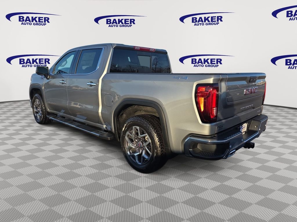 Sterling Metallic 2026 GMC Sierra 1500 SLT 4WD 10-Speed Automatic EcoTec3 6.2L V8 Sierra 1500 SLT, 4D Crew Cab, EcoTec3 6.2L V8, 10-Speed Automatic, 4WD, Sterling Metallic, Jet Black Leather, Hitch Guidance, Navigation System, Standard Suspension Package, Trailering Package.