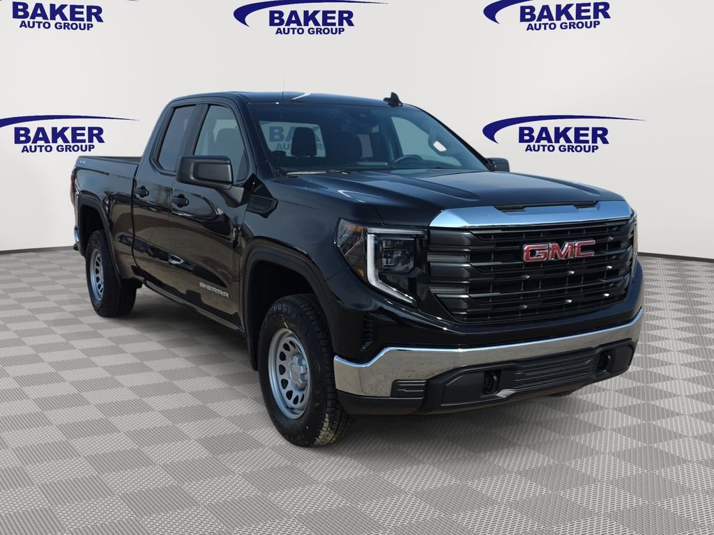 Onyx Black 2026 GMC Sierra 1500 Pro 4WD 10-Speed Automatic EcoTec3 5.3L V8 Sierra 1500 Pro, Double Cab, EcoTec3 5.3L V8, 10-Speed Automatic, 4WD, Onyx Black, Jet Black Vinyl, 2 Charge/Data USB Ports, 220 Amp Alternator, 4-Way Manual Driver Seat Adjuster, 4-Way Manual Passenger Seat Adjuster, Chrome Header with Flat Black Grille Insert Bars, Convenience Package, Deep-Tinted Glass, Electric Rear-Window Defogger, EZ Lift Power Lock and Release Tailgate, Front 40/20/40 Split-Bench Seat, Front Frame-Mounted Black Recovery Hooks, HD Rear Vision Camera, Heated Power-Adjustable Outside Mirrors, Heavy-Duty Air Filter, Hitch Guidance, LED Cargo Area Lighting, OnStar Services Capable, Power Door Locks, Power Front Windows with Driver Express Up/Down, Power Front Windows with Passenger Express Down, Power Rear Windows with Express Down, Preferred Equipment Group 1SA, Pro Value Package, Push Button Start, Remote Keyless Entry, Snow Plow Prep Package, Solar Absorbing Tinted Glass, Standard Suspension Package, Trailering Package, Wheels: 17 x 8 Silver Painted Steel, Wi-Fi Hotspot Capable.