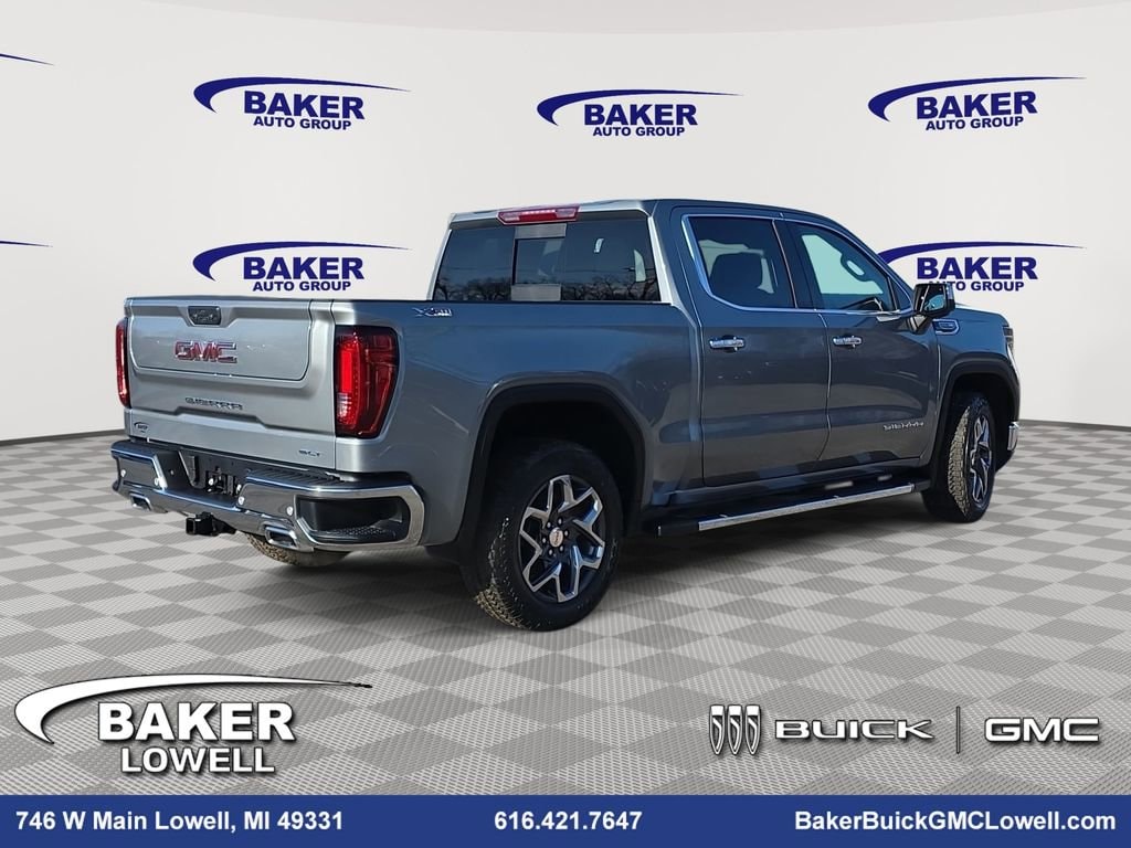 Sterling Metallic 2026 GMC Sierra 1500 SLT 4WD 10-Speed Automatic EcoTec3 5.3L V8 10-Speed Automatic, 4WD, Jet Black Leather.