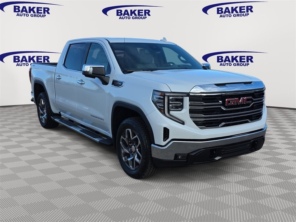 Glacier White Tricoat 2026 GMC Sierra 1500 SLT 4WD 10-Speed Automatic EcoTec3 5.3L V8 Sierra 1500 SLT, 4D Crew Cab, EcoTec3 5.3L V8, 10-Speed Automatic, 4WD, Glacier White Tricoat, Dark Walnut/Slate Leather, 120-Volt Bed Mounted Power Outlet, 120-Volt Interior Power Outlet, 170 Amp Alternator, 2 Charge/Data USB Ports, 2 Charge/Data USB Ports Inside Center Console, 2 Type-C Charge-Only Rear USB Ports, 20 Polished Aluminum Wheels, 6-Speaker Audio System Feature, Adaptive Cruise Control, All-Weather Floor Liner (LPO), Auto-Locking Rear Differential, Auxiliary External Transmission Oil Cooler, Chrome Header & Chrome Grille Insert Bars, Chrome Wheel To Wheel Assist Steps, Color-Keyed Carpeting Floor Covering, Deep-Tinted Glass, Dual Exhaust System, Electric Rear-Window Defogger, Electronic Precision Shift, Floor-Mounted Center Console, Front Bucket Seats, Front Frame-Mounted Black Recovery Hooks, Front Rain-Sensing Wipers, HD Rear Vision Camera, Heated 2nd Row Outboard Seats, Heavy-Duty Air Filter, High Capacity Suspension Package, Hill Descent Control, Hitch Guidance, Integrated Trailer Brake Controller, Keyless Open & Start, LED Cargo Area Lighting, Manual Tilt-Wheel & Telescoping Steering Column, Navigation System, Off-Road Suspension, OnStar Services Capable, Perimeter Lighting, Power Door Locks, Power Front Passenger Windows w/Express Up/Down, Power Front Windows w/Driver Express Up/Down, Power Rake & Telescoping Steering Column, Power Rear Windows w/Express Down, Power Sliding Rear Window w/Rear Defogger, Preferred Equipment Group 4SA, Premium Bose 7-Speaker Sound System, Push Button Start, Rear Wheelhouse Liners, Remote Vehicle Starter System, SiriusXM w/360L Trial Subscription, SLT Convenience Package, SLT Preferred Package, SLT Premium Package, Spray-On Pickup Bedliner w/GMC Logo, Standard Suspension Package, Steering Wheel Audio Controls, Theft Deterrent System (Unauthorized Entry), Trailering Package, Universal Home Remote, Ventilated Driver & Front Passenger Seats, Wheels: 20 Polished Aluminum w/RFX, Wi-Fi Hotspot Capable, Wireless Charging, X31 Hard Badge, X31 Off-Road & Protection Package, X31 Off-Road Package. Price includes: $1500 - Bonus Cash. Exp. 12/01/2025 $1750 - Purchase Allowance. Exp. 12/01/2025