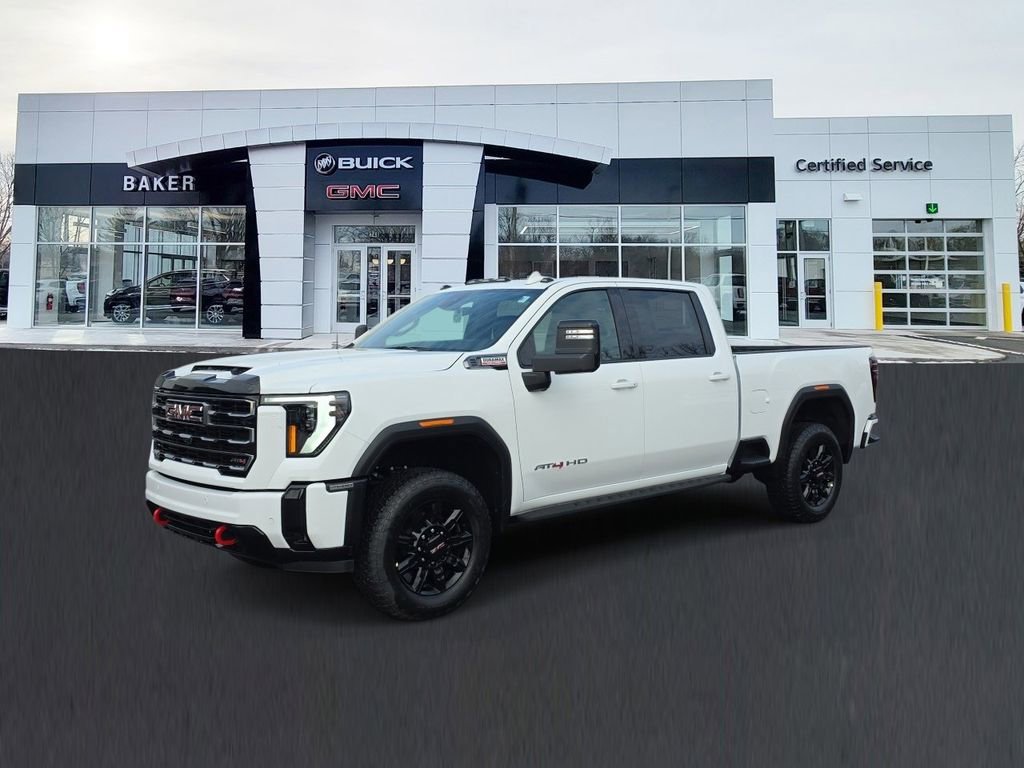 Summit White 2026 GMC Sierra 2500HD AT4 4WD 10-Speed Automatic Duramax 6.6L V8 Turbodiesel 10-Speed Automatic, 4WD, Jet Black With Kalahari Accents Leather.