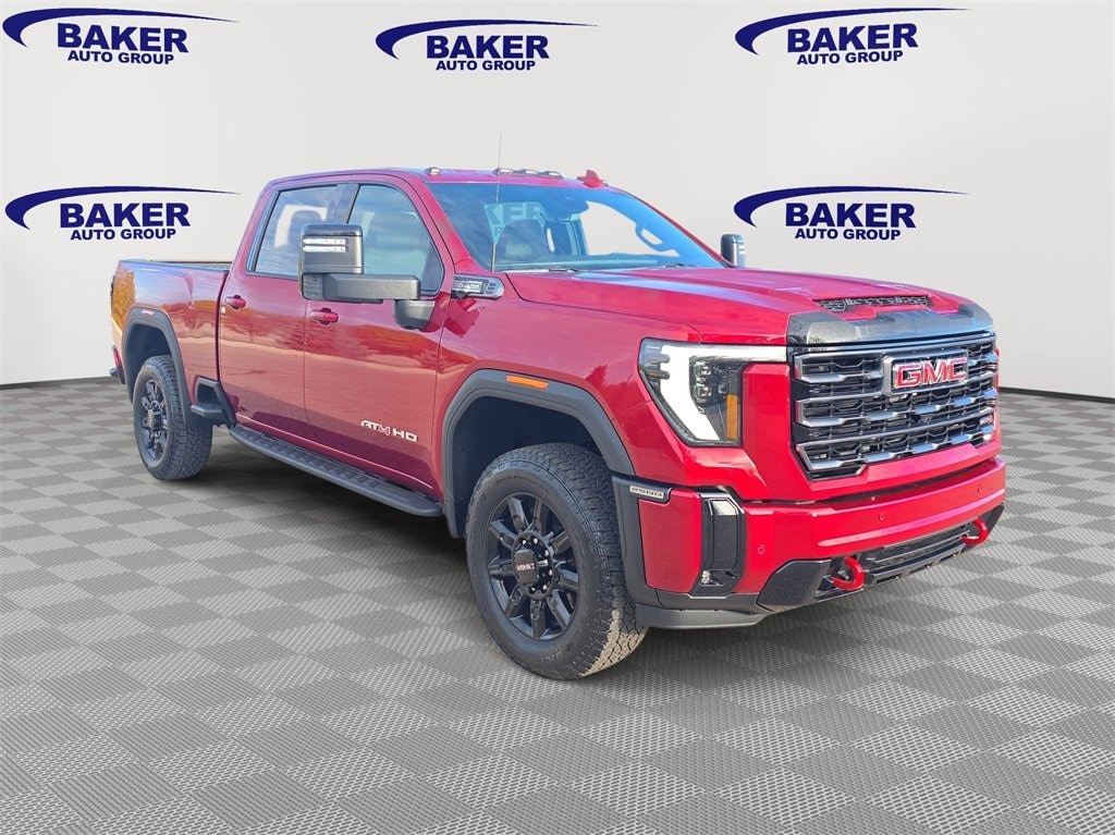 Volcanic Red Tintcoat 2026 GMC Sierra 2500HD AT4 4WD 10-Speed Automatic 6.6L V8 Sierra 2500HD AAT4, 4D Crew Cab, 6.6L V8, 10-Speed Automatic, 4WD, Volcanic Red Tintcoat, Leather, Hill Descent Control, X31 Off-Road Package.