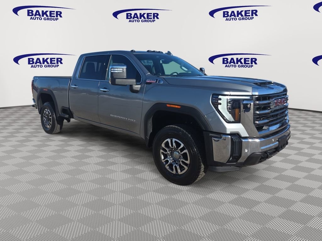 Sterling Metallic 2026 GMC Sierra 2500HD SLT 4WD 10-Speed Automatic Duramax 6.6L V8 Turbodiesel Sierra 2500HD SLT, 4D Crew Cab, Duramax 6.6L V8 Turbodiesel, 10-Speed Automatic, 4WD, Sterling Metallic, Black Leather, 10-Way Power Driver Seat Adjuster with Lumbar, 10-Way Power Passenger Seat Adjuster with Lumbar, 120-Volt Bed Mounted Power Outlet, 120-Volt Instrument Panel Power Outlet, 2 Charge-Only Rear USB Ports, 2 Charge/Data USB Ports, 2 Charge/Data USB Ports Inside Center Console, 2-Speed Active Transfer Case, 6-Speaker Audio System Feature, Adaptive Cruise Control, Bed View Camera with Two Trailer Camera Provisions, Bose Premium 7-Speaker Sound System, Chrome Surround Grille with Chrome Insert Bars, Deep-Tinted Glass, Driver Memory, Electric Rear-Window Defogger, Floor-Mounted Center Console, Front 40/20/40 Split-Bench Seats, Front Bucket Seats, Front Rain-Sensing Wipers, Gooseneck/5th Wheel Prep Package, HD Surround Vision, Heated 2nd Row Outboard Seats, Heated Driver and Front Outboard Passenger Seats, Heavy Duty Front Spring/Camper Package, Keyless Open and Start, LED Cargo Area Lighting, LED Smoked Amber Roof Marker Lamps, Manual Tilt-Wheel/Telescoping Steering Column, Max Trailering Package, OnStar Services Capable, Power Front Passenger Windows with Express Up/Down, Power Sliding Rear Window with Defogger, Preferred Equipment Group 4SA, Push Button Start, Rear Cross Traffic Alert, Rear Wheelhouse Liners, Remote Vehicle Starter System, Safety Alert Seat, Sierra HD Pro Safety Plus Package, SiriusXM with 360L Trial Subscription, SLT Convenience Package, SLT Preferred Package, Spray-on Pickup Bedliner with GMC Logo, Steering Wheel Audio Controls, Suspension Package, Trailer Cam Provisions and Trailer Viewing Software, Trailer Side Blind Zone Alert, Ultrasonic Front and Rear Park Assist, Unauthorized Entry Theft-Deterrent System, Universal Home Remote, Ventilated Driver and Front Passenger Seats, Wireless Charging, Wireless Phone Projection.