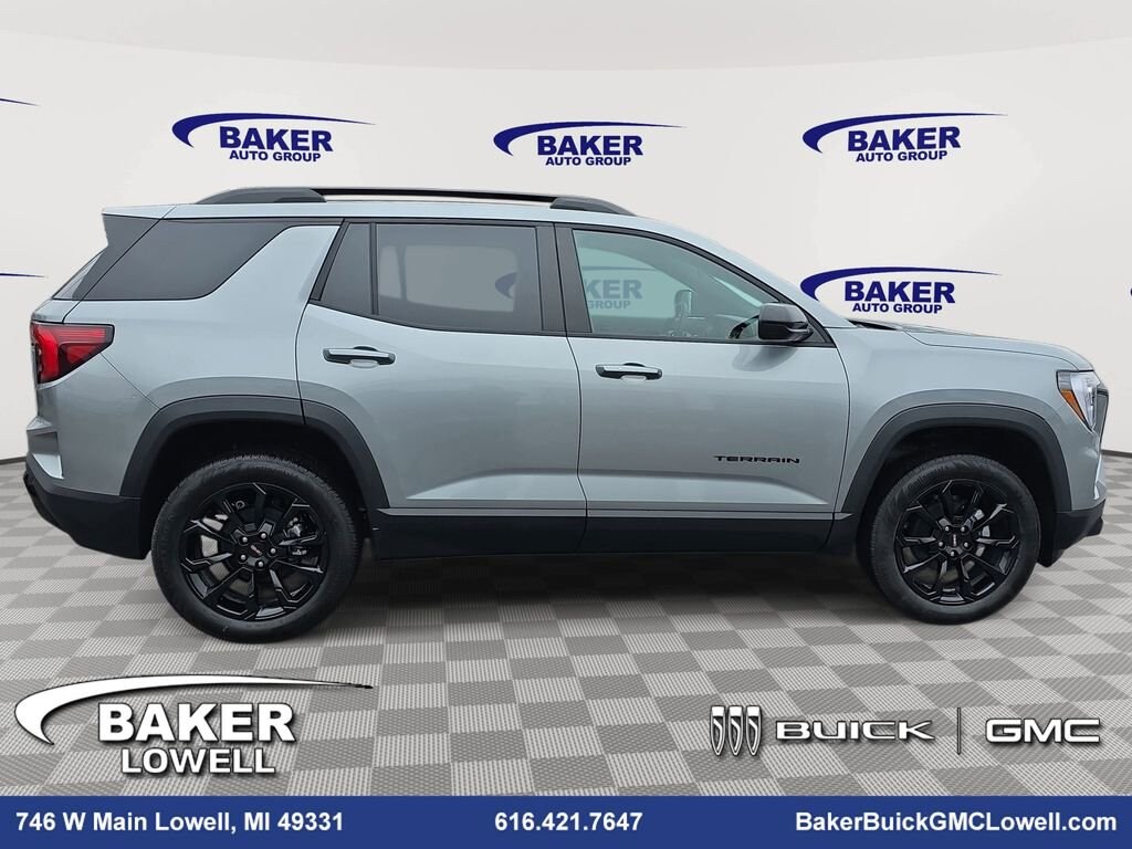 Sterling Metallic 2026 GMC Terrain Elevation AWD 8-Speed Automatic with Overdrive 1.5L DOHC AWD, 2-Way Power Driver Lumbar Seat Adjuster, 2-Way Power Front Passenger Lumbar Seat Adjuster, 3-Channel Programmable Universal Home Remote, 6-Speaker Audio System Feature, 8-Way Power Driver Seat Adjuster, 8-Way Power Passenger Seat Adjuster, AutoSense Hands-Free Power Programmable Liftgate, Black Edition, Black Exterior Accents & Black Exterior Badging, Black Mirror Caps, Brushed Aluminum Roof Rails, Cabin Humidity & Windshield Temperature Sensor, Convenience Package II, Convenience Package III, CoreTec Seat Trim, Darkened Grille & C Shaped Surrounding Bezel, Driver & Front Passenger Heated Seats, Dual-Zone Automatic Climate Control, Elevation Premium Package, Emergency communication system: OnStar and GMC connected services capable, Front & Rear Black GMC Emblems (LPO), Front Bucket Seats, Front Intermittent RainSense Wipers, Gloss Black Roof-Mounted Side Rails, Heated door mirrors, Heated Rear Outboard Seats, Heated steering wheel, Heated Wiper Park, Memory Package, Overhead Sunglass Storage, Radio: Premium GMC Infotainment System, SiriusXM w/360L Trial Subscription, Ventilated Driver Seat, Ventilated Front Passenger Seat, Wheels: 19 Gloss Black Painted Aluminum, Wireless Apple CarPlay/Wireless Android Auto, Wireless Phone Charging for Portable Devices.Recent Arrival! 24/28 City/Highway MPG