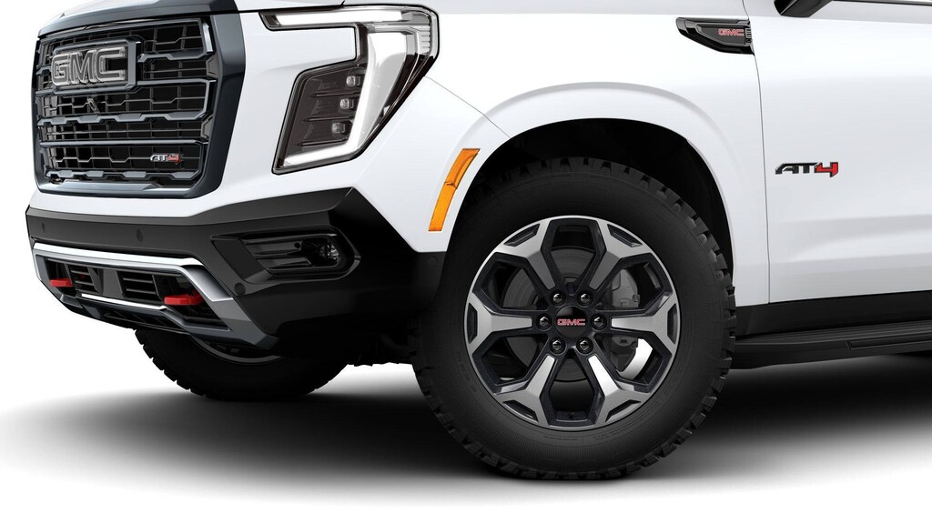Summit White 2026 GMC Yukon XL AT4 4WD 10-Speed Automatic with Overdrive EcoTec3 5.3L V8 Yukon XL AT4, 4D Sport Utility, EcoTec3 5.3L V8, 10-Speed Automatic with Overdrive, 4WD, Summit White, Forest Storm With Mahogany Accents Leather, 1st and 2nd Rows All-Weather Floor Liners, 3rd Row All-Weather Floor Liners, 4-Way Power Driver Lumbar Seat Adjuster, 4-Way Power Front Passenger Lumbar Seat Adjuster, All-Weather Cargo Mat, AT4 Black Appearance Package, AutoSense Hands-Free Power Liftgate, Black Nameplates, Black Roof-Mounted Luggage Rack Side Rails, Body-Color Door Handles, Bright Front and Rear Door Sill Plates, Dual Exhaust System, Floor Liner Package, Front High-Approach Angle Fascia, Heavy-Duty Air Filter, Hill Descent Control, Illuminated Front Black GMC Emblem, Magnetic Ride Control Suspension, Navigation system: GMC Connected Navigation, Perforated Heather and Ventilated Driver and Front Passenger Seats, Power Tilt and Telescopic Steering Column, Preferred Equipment Group 4SB, Red Horizontal-Mounted Recovery Hooks, Wheels: 20 x 9 Machined and Painted.