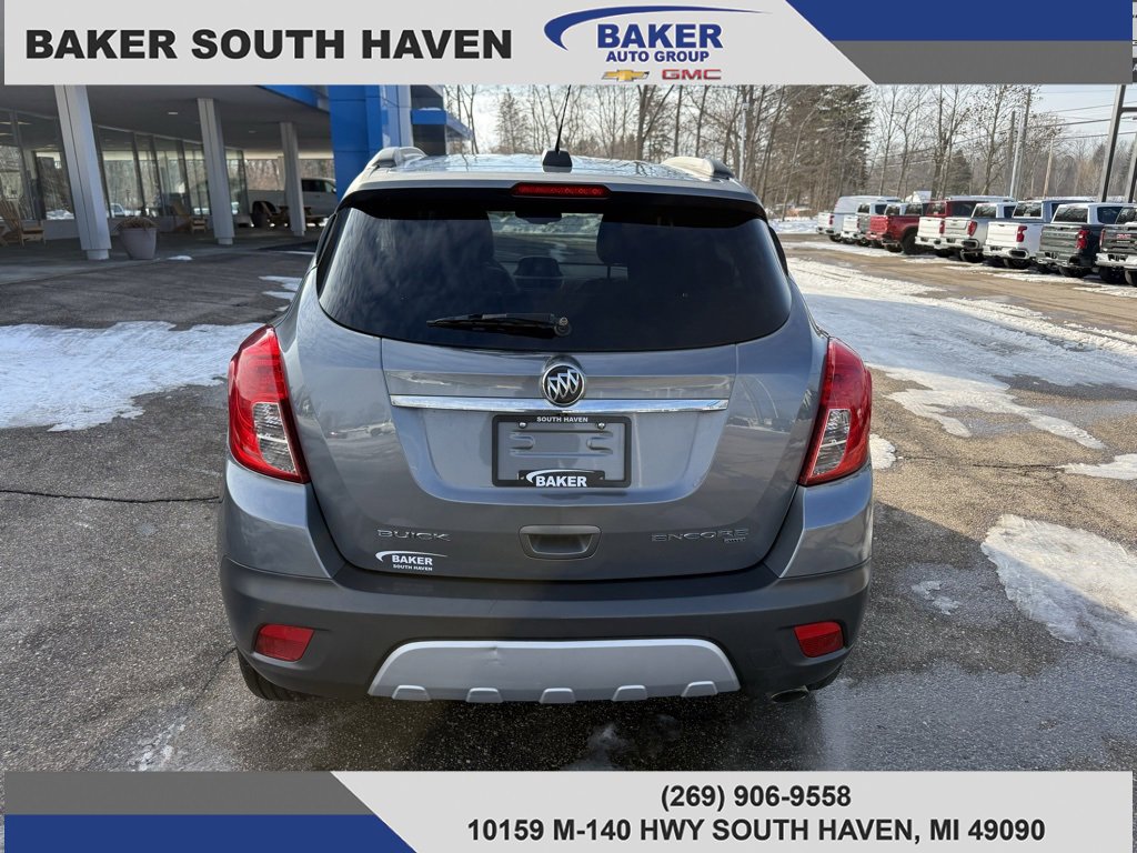 Satin Steel Gray Metallic 2015 Buick Encore Leather AWD 6-Speed Automatic Electronic with Overdrive ECOTEC 1.4L I4 SMPI DOHC Turbocharged VVT AWD, Encore Leather, AWD, Satin Steel Gray Metallic, Ebony Leather, 6-Way Power Driver Seat Adjuster, Automatic temperature control, Exterior Parking Camera Rear, Front Bucket Seats, Fully automatic headlights, Heated Driver & Front Passenger Seats, Heated steering wheel, Memory seat, Preferred Equipment Group 1SL, Radio: AM/FM Audio System w/MP3 CD Player, SiriusXM Satellite Radio, Steering wheel mounted audio controls.