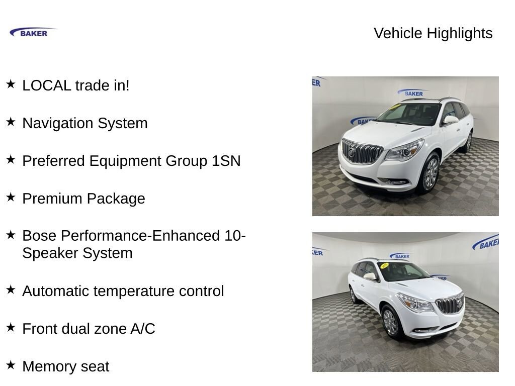 Summit White 2017 Buick Enclave Premium Group AWD 6-Speed Automatic Electronic with Overdrive 3.6L V6 SIDI VVT Enclave Premium Group, 3.6L V6 SIDI VVT, 6-Speed Automatic Electronic with Overdrive, AWD, Summit White, Ebony With Ebony Interior Accents.
