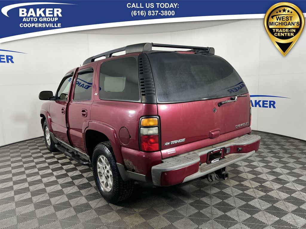 Sport Red Metallic 2005 Chevrolet Tahoe Z71 4WD 4-Speed Automatic with Overdrive Vortec 5.3L V8 SFI LOCAL trade in!, Tahoe Z71, Vortec 5.3L V8 SFI, 4WD, Sport Red Metallic, 17 x 7 Machined Cast Aluminum Wheels, Automatic Tri-Zone Air Conditioning, Black Roof-Mounted Luggage Rack, Color-Keyed Door Handles, Color-Keyed Grille, Custom Leather Seat Trim, Electric Power Tilt-Sliding Sunroof w/Express-Open, Front & Rear Wheel Flares, Front dual zone A/C, Front Full-Feature Power Reclining Bucket Seats, Front Painted Bumper, Front Round Halogen Fog Lamps, Heavy-Duty Rear Locking Differential, Heavy-Duty Trailering Equipment, Lower Rocker Moldings, Off-Road Suspension Package, Painted Rear Step Bumper w/Pad, Power Adjustable Pedals, Power driver seat, Power Folding Outside Rear-View Mirrors, Preferred Equipment Group 1SL, Rear Seat Entertainment System, Sun, Sound & Entertainment Package, Tubular Assist Steps, Unique Dark Gray Air Dam.