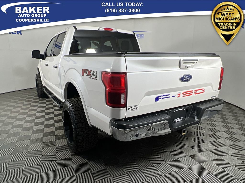 White Platinum 2018 Ford F-150 Lariat 4WD 10-Speed Automatic 3.5L V6 EcoBoost LOCAL trade in!, F-150 Lariat, 3.5L V6 EcoBoost, 10-Speed Automatic, 4WD, White Platinum, Black Leather, 110V/400W Outlet, 4x4 FX4 Off-Road Bodyside Decal, Active Park Assist, Adjustable pedals, AppLink/Apple CarPlay and Android Auto, Automatic High Beam w/Rain-Sensing Wipers, BLIS Blind Spot Information System, Class IV Trailer Hitch Receiver, Electronic Locking w/3.55 Axle Ratio, Equipment Group 502A Luxury, FX4 Off-Road Package, Heated front seats, Heated Steering Wheel, Higher-Capacity Radiator, Higher-Power Cooling Fans, Hill Descent Control, Integrated Trailer Brake Controller, Lane-Keeping System, Lariat Chrome Appearance Package, LED Sideview Mirror Spotlights, Memory seat, Navigation System, Off-Road Tuned Front Shock Absorbers, Pedal memory, Power driver seat, Power Glass Sideview Mirr w/Chrome Skull Caps, Power passenger seat, Pro Trailer Backup Assist, Quad Beam LED Headlamps & LED Taillamps/Fog Lamps, Radio: B&O Play Premium Audio System, Remote Start System w/Remote Tailgate Release, Reverse Sensing System, SYNC Connect, Technology Package, Trailer Tow Package, Universal Garage Door Opener, Upgraded Front Stabilizer Bar, Ventilated front seats, Voice-Activated Touchscreen Navigation System, Wheels: 20 Chrome-Like PVD, Windshield Wiper De-Icer.
