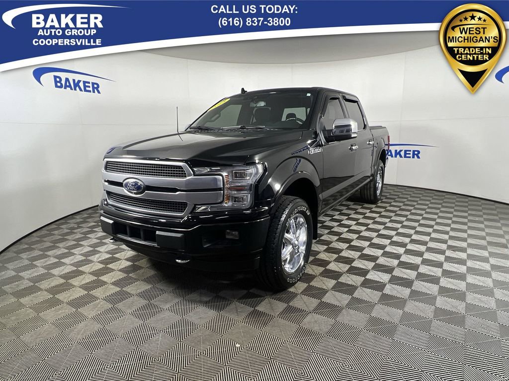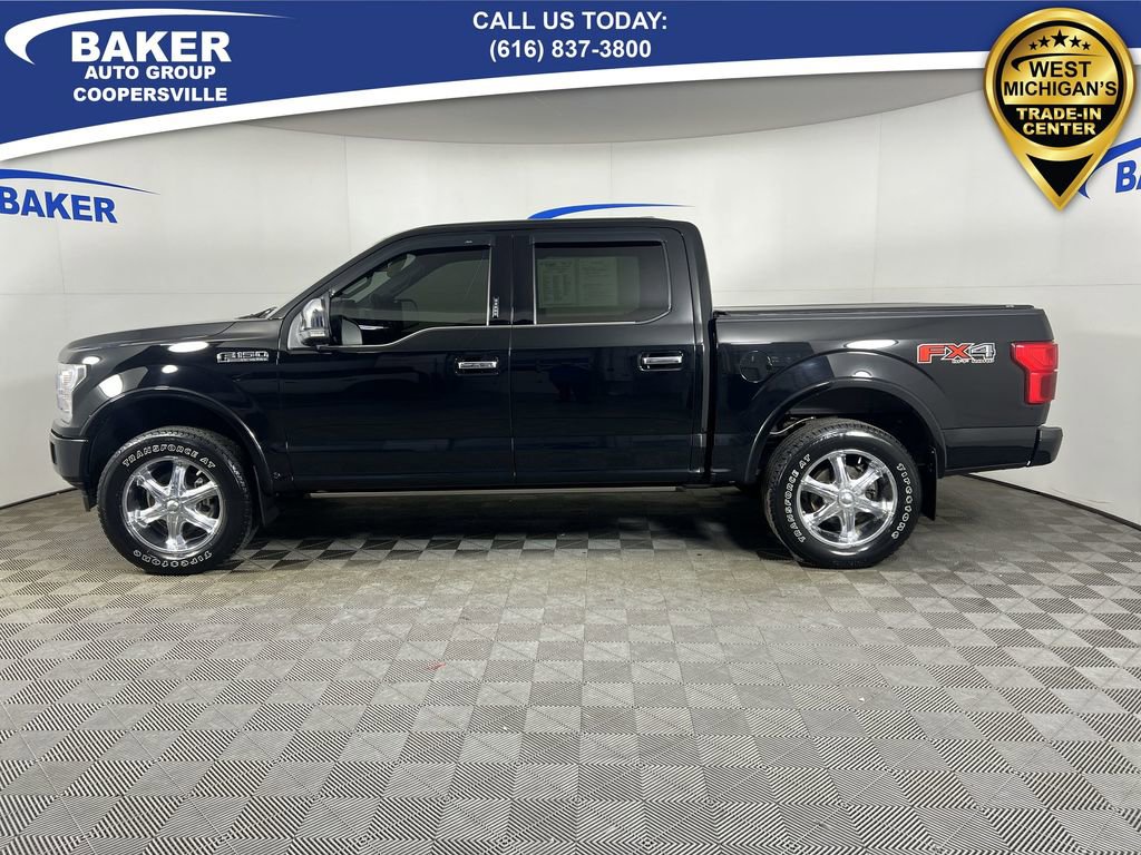 New Price! Shadow Black 2018 Ford F-150 Platinum 4WD 10-Speed Automatic 3.5L V6 EcoBoost Non-Smoker, LOCAL trade in!, F-150 Platinum, 4D SuperCrew, 3.5L V6 EcoBoost, 10-Speed Automatic, 4WD, Shadow Black, 20 Polished Aluminum Wheels, 4x4 FX4 Off-Road Bodyside Decal, Active Park Assist, Adaptive Cruise Control, Adjustable pedals, AppLink/Apple CarPlay and Android Auto, Class IV Trailer Hitch Receiver, Electronic Locking w/3.55 Axle Ratio, Equipment Group 701A Luxury, Exterior Parking Camera Rear, FX4 Off-Road Package, Heated front seats, Heated rear seats, Heated steering wheel, Higher-Capacity Radiator, Higher-Power Cooling Fans, Hill Descent Control, Integrated Trailer Brake Controller, Lane-Keeping System, Memory seat, Navigation System, Off-Road Tuned Front Shock Absorbers, Pedal memory, Power driver seat, Power passenger seat, Pro Trailer Backup Assist, Radio: B&O Play Premium Audio System, Rear Parking Sensors, SYNC 3, Tailgate Step w/Tailgate Lift Assist, Technology Package, Trailer Tow Package, Twin Panel Moonroof, Upgraded Front Stabilizer Bar, Ventilated front seats, Voice-Activated Touchscreen Navigation System.