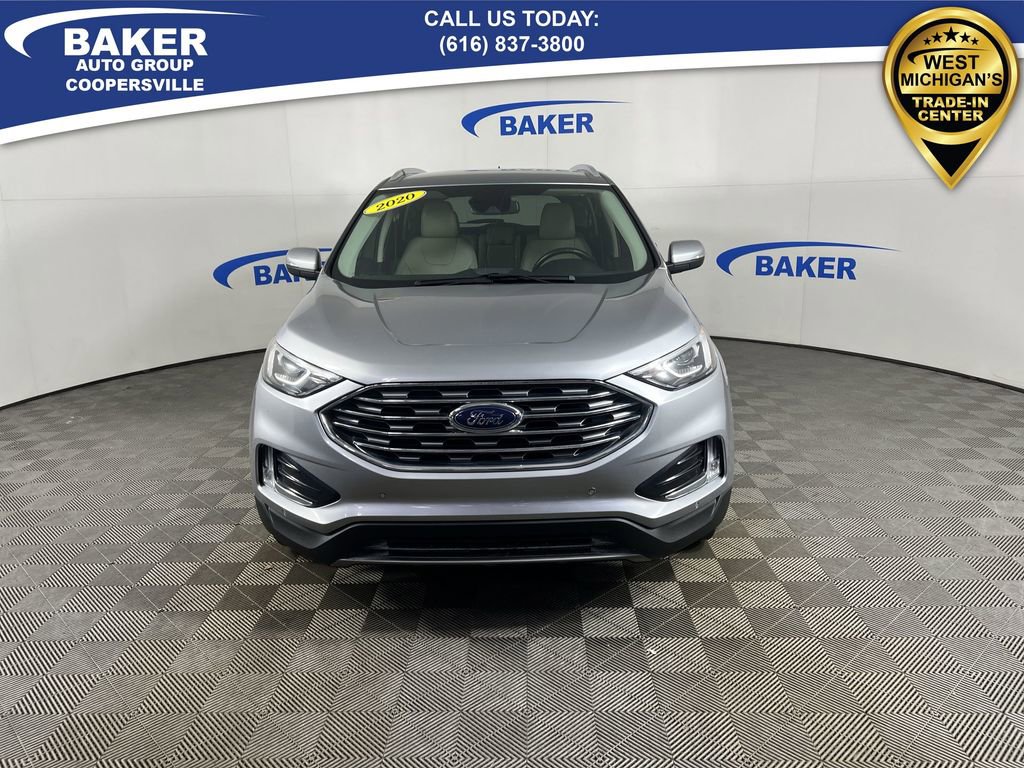 Silver Metallic 2020 Ford Edge Titanium FWD 8-Speed Automatic EcoBoost 2.0L I4 GTDi DOHC Turbocharged VCT LOCAL trade in!, Edge Titanium, EcoBoost 2.0L I4 GTDi DOHC Turbocharged VCT, FWD, Soft Ceramic Leather, Equipment Group 300A, Heated front seats, Heated steering wheel, Memory seat, Power driver seat, Power Liftgate, Power passenger seat, SYNC 3 Communications & Entertainment System, Wheels: 19 Luster Nickel-Painted Aluminum.