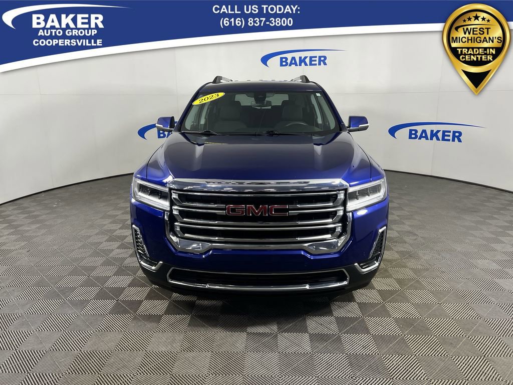 New Price! Ultra Blue Metallic 2023 GMC Acadia SLE AWD 9-Speed Automatic 2.0L Turbocharged Non-Smoker, ONE Owner, no accidents, CARFAX CERTIFIED,, CAR BRAVO CERTIFIED - 12 month/12,000 mile Limited Bumper to Bumper Warranty!, Acadia SLE, 2.0L Turbocharged, 9-Speed Automatic, AWD, Ultra Blue Metallic, 120-Volt Power Outlet, 1st & 2nd Row All-Weather Floor Liner (LPO), 3rd Row All-Weather Floor Liner (LPO), 4-Way Manual Driver Seat Adjuster, 6-Speaker Audio System Feature, 8-Way Power Driver Seat Adjuster, Apple CarPlay/Android Auto, Automatic temperature control, Brushed Aluminum Roof Rails, Driver Convenience Package, Floor Liner Package (LPO), Front dual zone A/C, Hands Free Power Programmable Liftgate, Heated Driver & Front Passenger Seats, Integrated Cargo Liner (LPO), Power Driver Lumbar Control Seat Adjuster, Preferred Equipment Group 3SA, Radio: AM/FM w/8 Diagonal Multi-Touch Display, Remote Start, SiriusXM Radio, Wheels: 18 Machined Aluminum w/Dark Accents, Wireless Apple CarPlay/Wireless Android Auto.