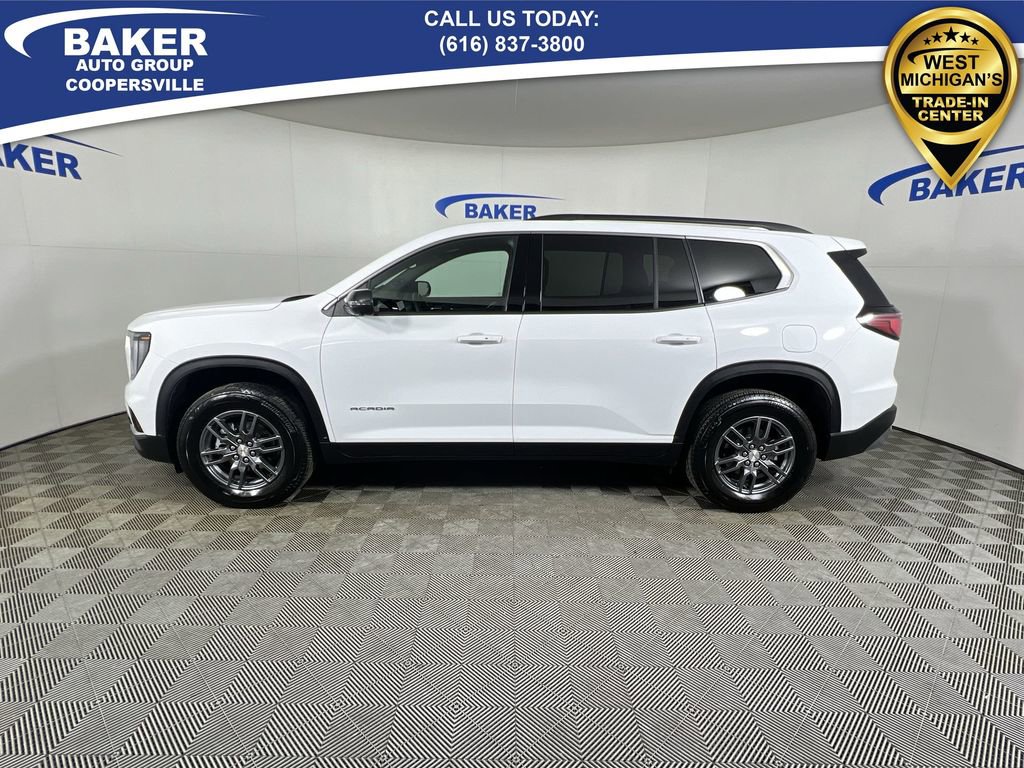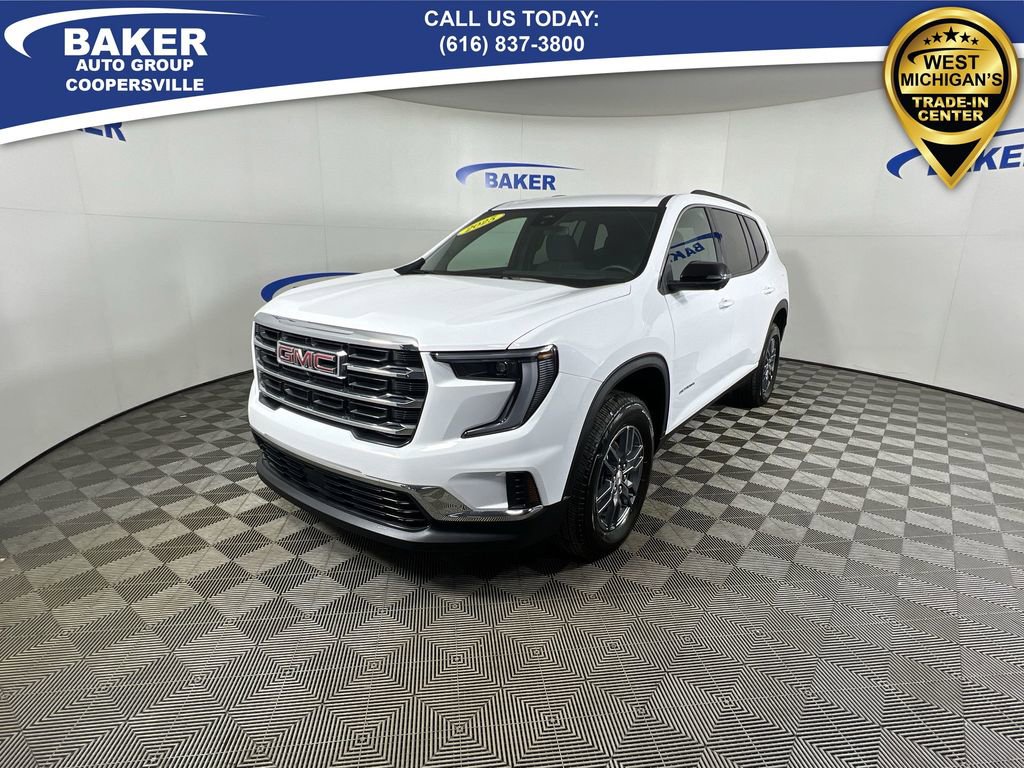 New Price! Summit White 2025 GMC Acadia Elevation AWD 8-Speed Automatic 2.5L DOHC ONE Owner, no accidents, CARFAX CERTIFIED,, CAR BRAVO CERTIFIED - 12 month/12,000 mile Limited Bumper to Bumper Warranty!, Acadia Elevation, 2.5L DOHC, 8-Speed Automatic, AWD, Summit White, After Dark Cloth, 18 x 7.5 Aluminum Wheels, 2-Way Driver Power Lumbar Seat Adjuster, 4-Way Manual Front Passenger Seat Adjuster, 8-Passenger Seating (2-3-3 Seating Configuration), 8-Way Power Driver Seat Adjuster, Apple CarPlay/Android Auto, Auto High-beam Headlights, Automatic temperature control, Exterior Parking Camera Rear, Front Bucket Seats, Front dual zone A/C, Fully automatic headlights, Heated front seats, Heated steering wheel, Navigation System, Power driver seat, Power Liftgate, Preferred Equipment Group 4SD.
