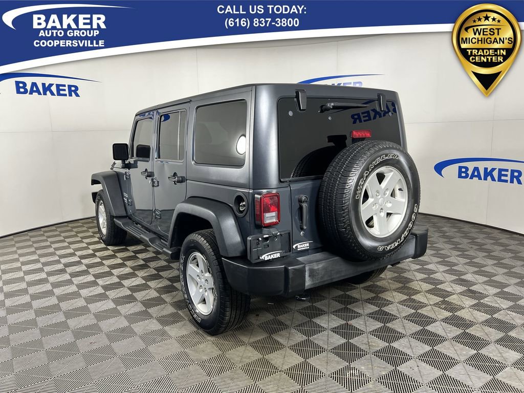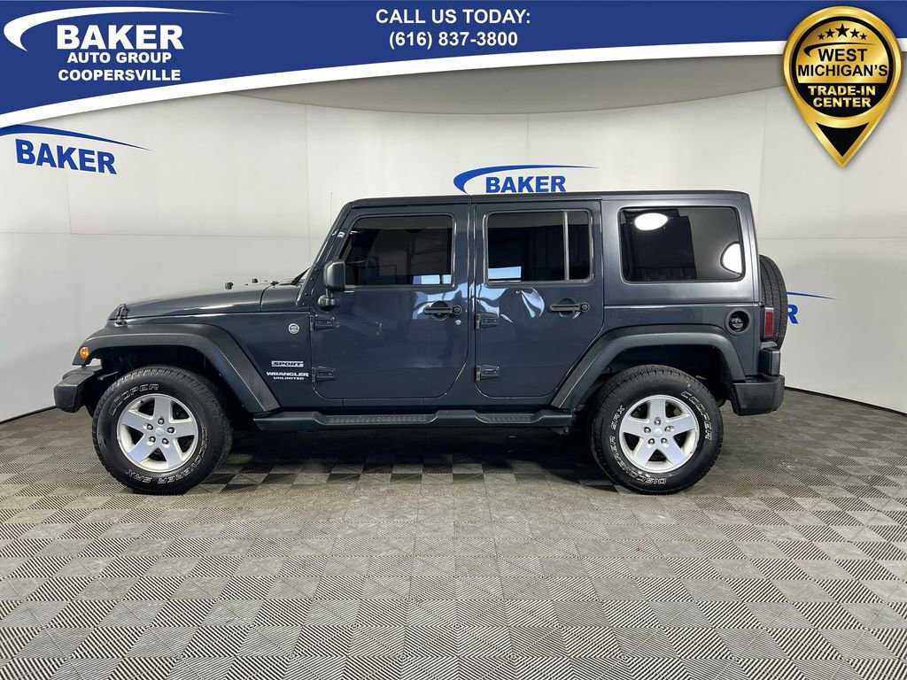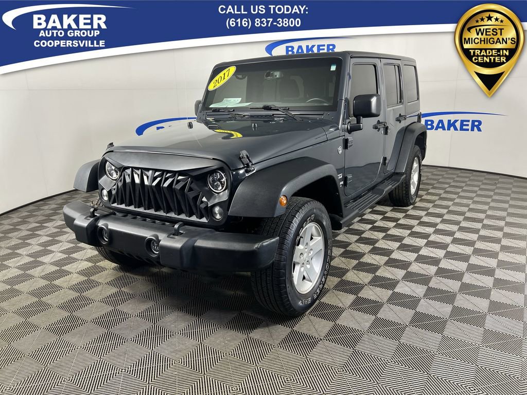 New Price! Rhino Clearcoat 2017 Jeep Wrangler Unlimited Sport 4WD 5-Speed Automatic 3.6L V6 24V VVT LOCAL trade in!, Wrangler Unlimited Sport, 3.6L V6 24V VVT, 5-Speed Automatic, 4WD, Rhino Clearcoat, Black Cloth, 17 x 7.5 Aluminum Wheels, 3.21 Rear Axle Ratio, Auto-Dimming Mirror w/Reading Lamp, Black 3-Piece Hard Top, Connectivity Group, Delete Sunrider Soft Top, Freedom Panel Storage Bag, Front 1-Touch Down Power Windows, Power Convenience Group, Power Heated Mirrors, Power Locks, Quick Order Package 24S, Rear Window Defroster, Rear Window Wiper/Washer, Remote Keyless Entry, Remote USB Port, Security Alarm, Tire Pressure Monitoring Display, Uconnect Voice Command w/Bluetooth.