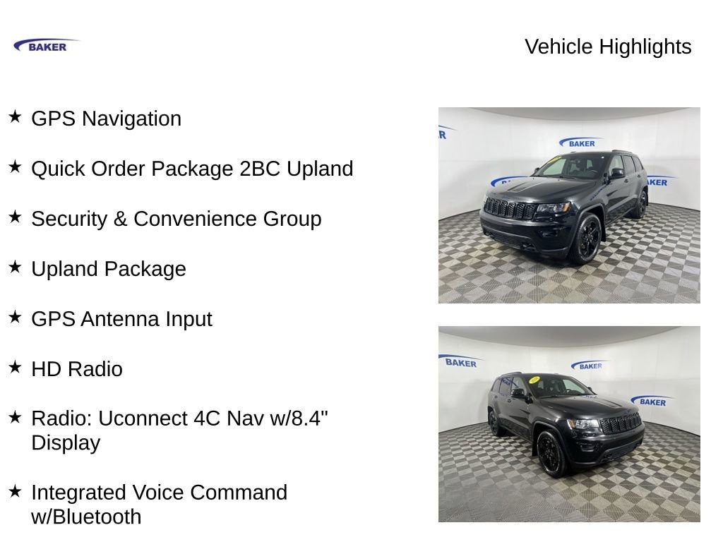 New Price! Diamond Black Crystal Pearlcoat 2018 Jeep Grand Cherokee Upland Edition 4WD 8-Speed Automatic 3.6L V6 24V VVT Grand Cherokee Upland Edition, 3.6L V6 24V VVT, 8-Speed Automatic, 4WD, Diamond Black Crystal Pearlcoat, Black Cloth, 1-Year SiriusXM Guardian Trial, 115V Auxiliary Power Outlet, 5-Year SiriusXM Traffic Service, 5-Year SiriusXM Travel Link Service, 8.4 Touchscreen Display, Apple CarPlay/Android Auto, Auto-Dimming Rear-View Mirror, Blue-Accent Badges, Dark Day Light Opening Moldings, Dark Headlamp Bezel Finish, Dark Lens Taillamps, Delete Laredo Badge, Gloss Black Exterior Accents, Gloss Black Grille w/Black Honeycomb, Gloss Black Rear Fascia Applique, Gloss Black Roof Rails, Google Android Auto, GPS Antenna Input, GPS Navigation, HD Radio, Integrated Voice Command w/Bluetooth, Jeep Black Gloss Badging, Liquid Titanium Accents, ParkView Rear Back-Up Camera, Power 4-Way Driver Lumbar Adjust, Power 8-Way Driver/Manual Passenger Seat, Power Liftgate, Power Sunroof, Quick Order Package 2BC Upland, Radio: Uconnect 4C Nav w/8.4 Display, Rear Fascia Black MIC Step Pad, Security & Convenience Group, SiriusXM Traffic Plus, SiriusXM Travel Link, Steering Wheel Mounted Audio Controls, Tow Hooks, Universal Garage Door Opener, Upland Package, USB Host Flip, Wheels: 20 x 8.0 Gloss Black Painted Aluminum.