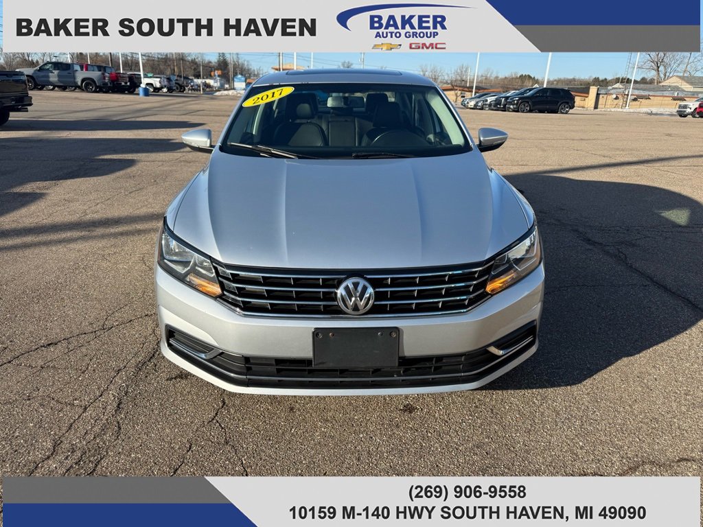 Reflex Silver Metallic 2017 Volkswagen Passat 1.8T SE FWD 6-Speed Automatic with Tiptronic 1.8L TSI Titan Black Premium Synthetic, Delay-off headlights, Exterior Parking Camera Rear, Front Bucket Seats, Heated Front Bucket Seats, Heated front seats, Power driver seat, Power moonroof, Roadside Assistance Kit, V-Tex Leatherette Seating Surfaces, Wheels: 17 Knoxville Alloy.